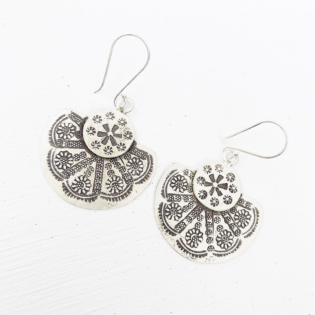 Stunning hand etched Hill Tribe Silver Thai style drop earrings with hand etching. Measure approx 45mm including hook.