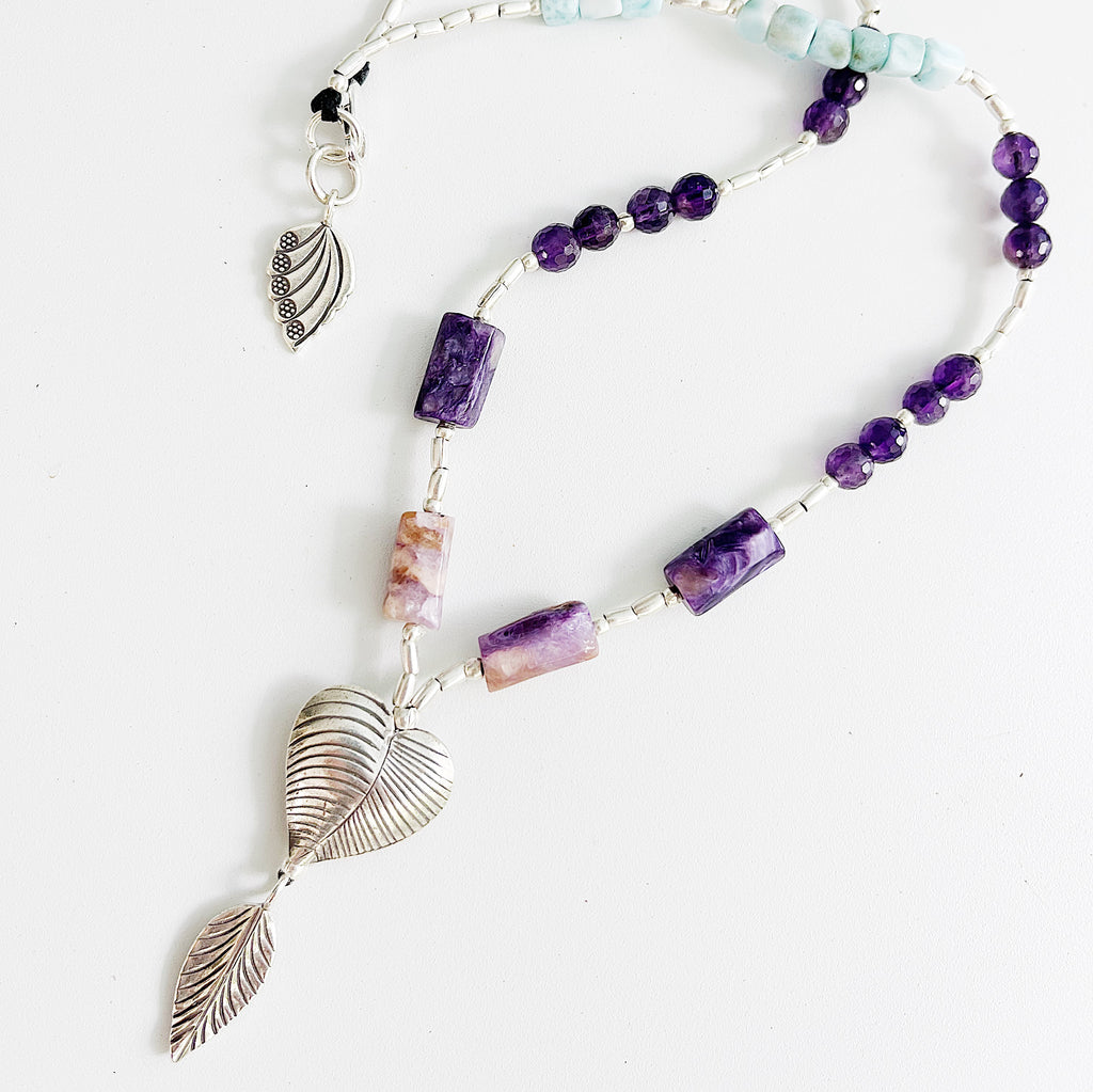 Beautiful Hill Tribe Silver & Amethyst and Larimar gemstone necklace.